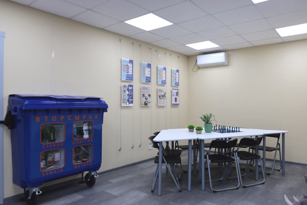 Внутри экоцентра посетителей ждет комфортное пространство, где бесплатно можно послушать лекции, принять участие в экоквизах и мастер-классах. Для маленьких гостей в специальной детской обучающей зоне подготовлены яркие и познавательные книги и настольные игры.